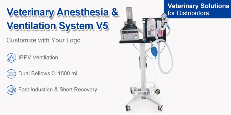 VET-V5 veterinary anesthesia ventilator provides precise respiratory support for animals up to 100 kg, ensuring stable ventilation and optimal oxygen delivery.